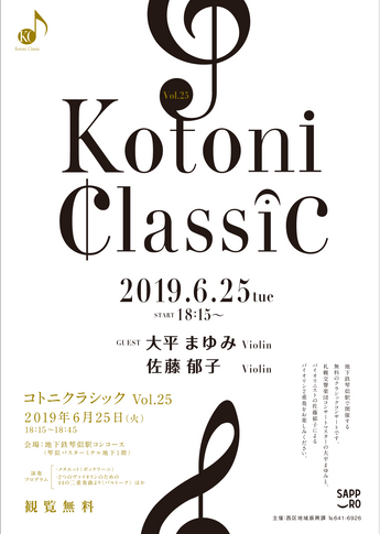 早速ですが、6月25日(火)コトニクラシック♪で演奏させていただきます。
